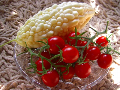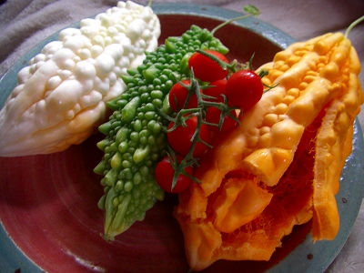 (どうみてもオレンジのゴーヤは白ゴーヤの完熟バージョン)