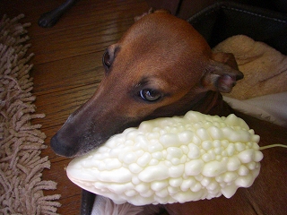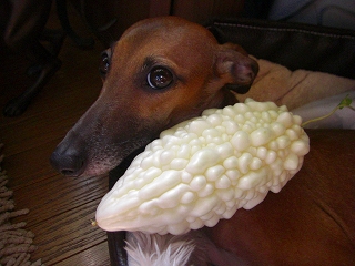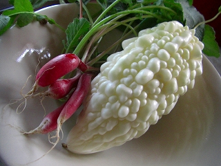 累計5本目の白ゴーヤ=18センチ、250グラム、直径5センチ