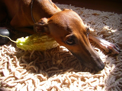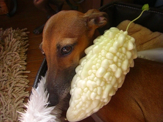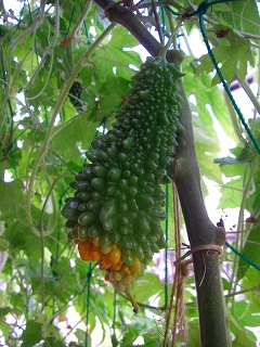 1.5ヶ月かけてゆっくりゆっくり成長し、いびつに育った緑ゴーヤ2号