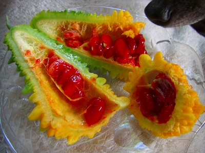 24日に採れた白ゴーヤも結構熟していたので中身はほぼ真っ赤か