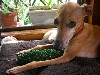 緑色のすずかぜゴーヤ2号を収穫しました♪