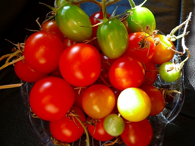 昨年と比べるとトマトもゴーヤも半分ほどの少なめ収穫ですが