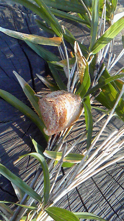 こちらの茶色くんは3日前にちょろっと生まれた先輩カマキリ