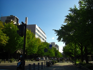 日本大通の銀杏並木はまだまだ緑