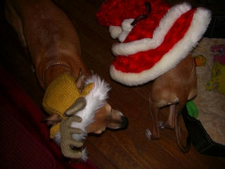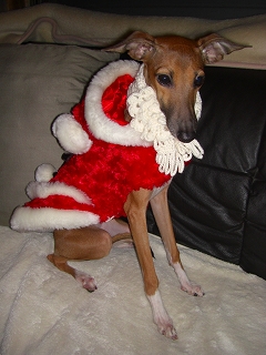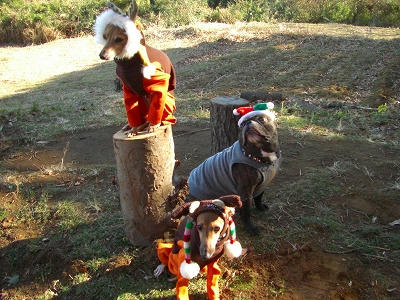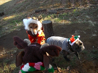 ジュノちゃんのサンタ、とってもあどけなくて、かわいいです。そして、アロマ君のトナカイの後姿なんか、笑えます。かぶりものは小顔のイタグレのほうがエース君より似合うかなっ!?