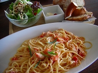 パスタには一口サイズの5種類のパンとサラダつき