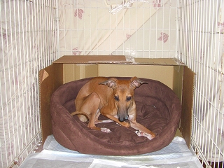 うちもアナだけ夜はサークルでヒトリ寝なので、ダンボールハウスです。