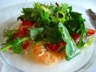 天使の海老の胡桃マヨネーズ生ハムのサラダ添