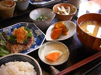 今日のおすすめ定食はマグロのハンバーグ