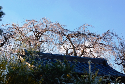 東慶寺さんの枝垂れ桜、門前からもよくみえました