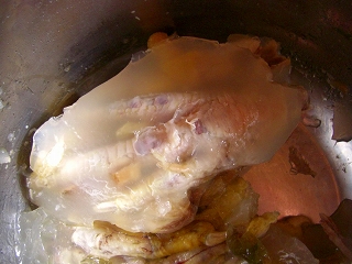 圧力鍋で煮てコラーゲンを抽出