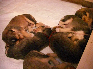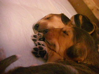 パピーたちが大きくなってきてトリちゃんもたじたじの授乳風景^^;