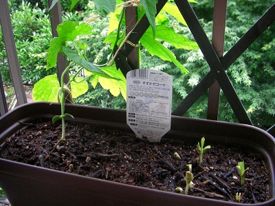 と、すでにゴーヤの苗(左)は購入ずみでずいぶん育っているのですが