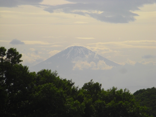 雲の切れ目から富士山が