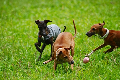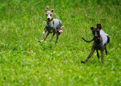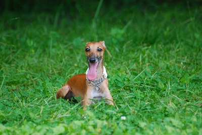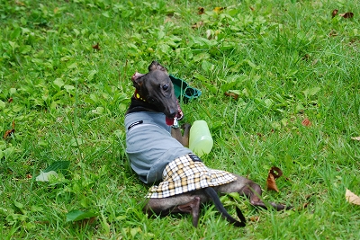Aたん、たくさん走ってお水も飲んで一休みの図