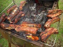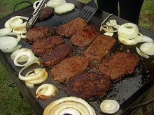 )ブヨ被害にもあわず飼い主たちはひたすらご馳走にありつき