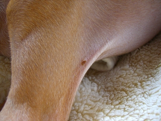 はじめてのお散歩の翌日気がついたジュノの脇にできたかさぶた。