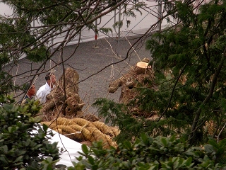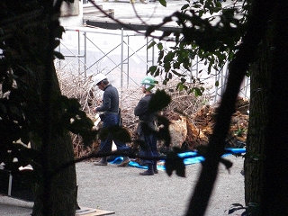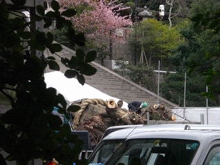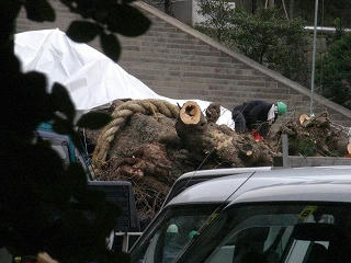 しかもクレーンも入っての大銀杏切断作業のためか