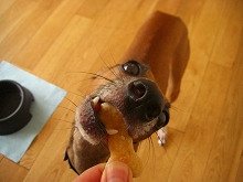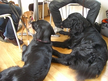 他の犬がいるとちょっとあやしいあろま~じゅもキャリーベッドでイイコにできました