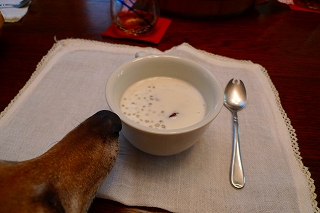 タピオカ入りココナッツミルクあんこ添えのデザートつき