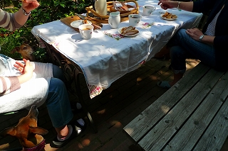 ティータイムはケヤキの木の下で