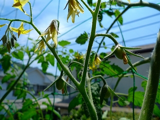 5月のはじめに一番花を咲かせたトマトたち