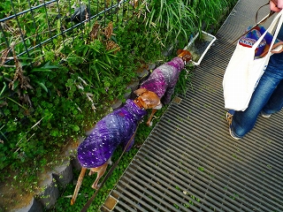 アロマは久々の外ヌードで寒そうです(笑)