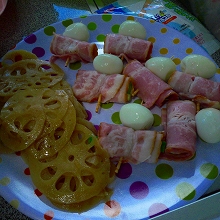 うずらの卵とベーコン串