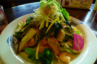 大盛りお刺身サラダも渡り蟹のパスタも健在(^^)v