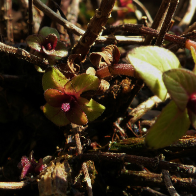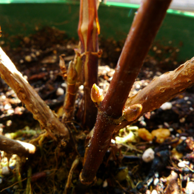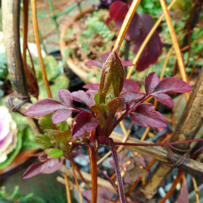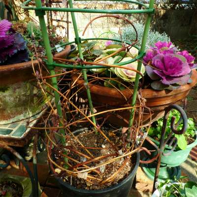 こちらのすっかり冬枯れたクレマチスをよ~く観察してみると。。