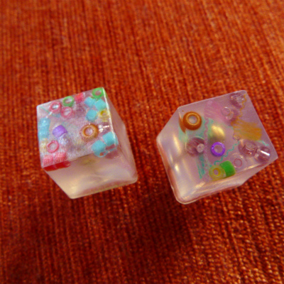 ビーズや糸を入れて樹脂で固めて