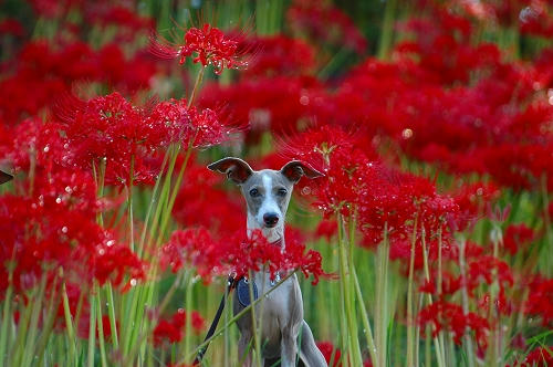 曼珠沙華に囲まれたお気に入りのノアさんを
