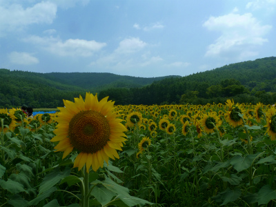 ひまわり畑が満開の花の都公園は