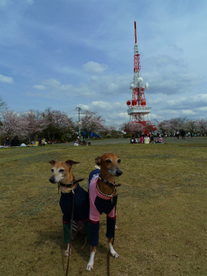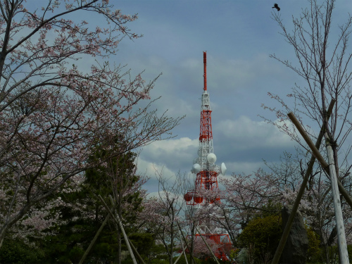 電波塔の広場、桜が満開で~す\(^o^)/
